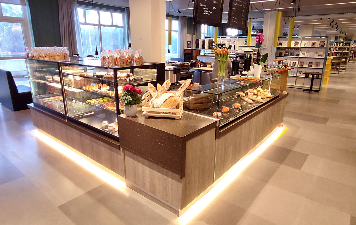 I slutet av februari öppnade vi ett förnyat café i entrén till biblioteket i Nacka Forum. Här kan du sitta i lugn och ro och läsa, eller träffa vänner över en fika.
